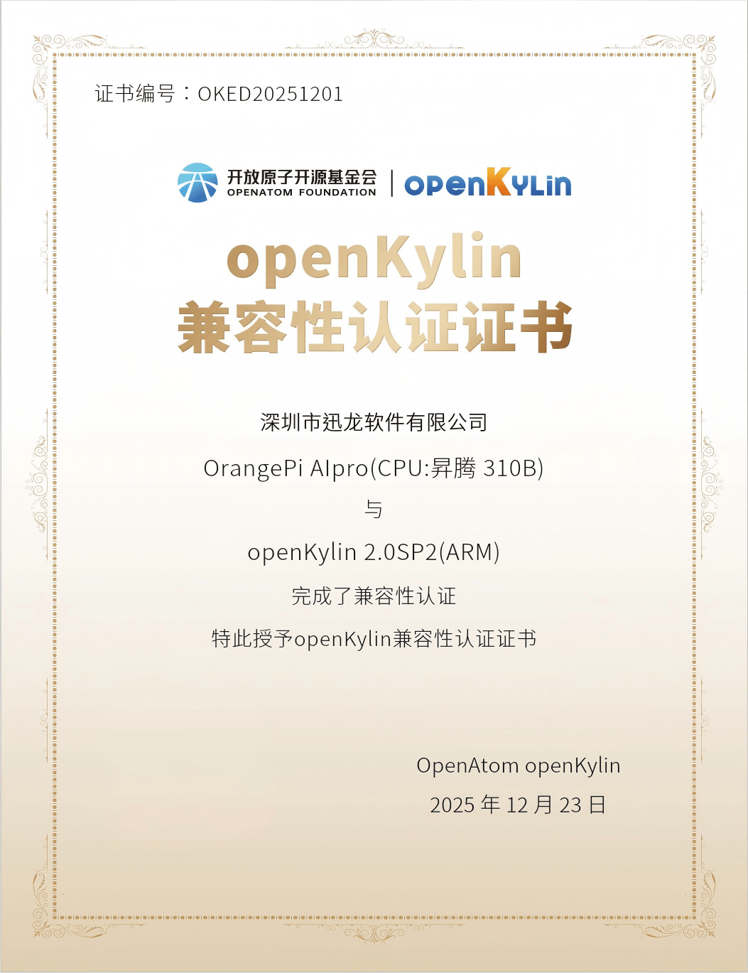 OpenAtom openKylin(简称“openKylin”)是由原子开源基金会孵化及运营的开源项目,系统办事于多个国度和地域,并积极融入Linux基金会等国际组织,配合鞭策并实现OrangePi AIpro 20T(昇腾310B芯片)取openKylin 2.0 SP2操做系统的全面适配。更为边缘智能、轻量级AI推理等场景供给了高效、自从可控的软硬件协同处理方案。普遍使用于党政、金融、通信等环节行业。以“为世界供给取人工智能手艺深度融合的开源操做系统”为愿景,是中国开源力量世界的主要代表。通过深度定制openKylin操做系统内核,